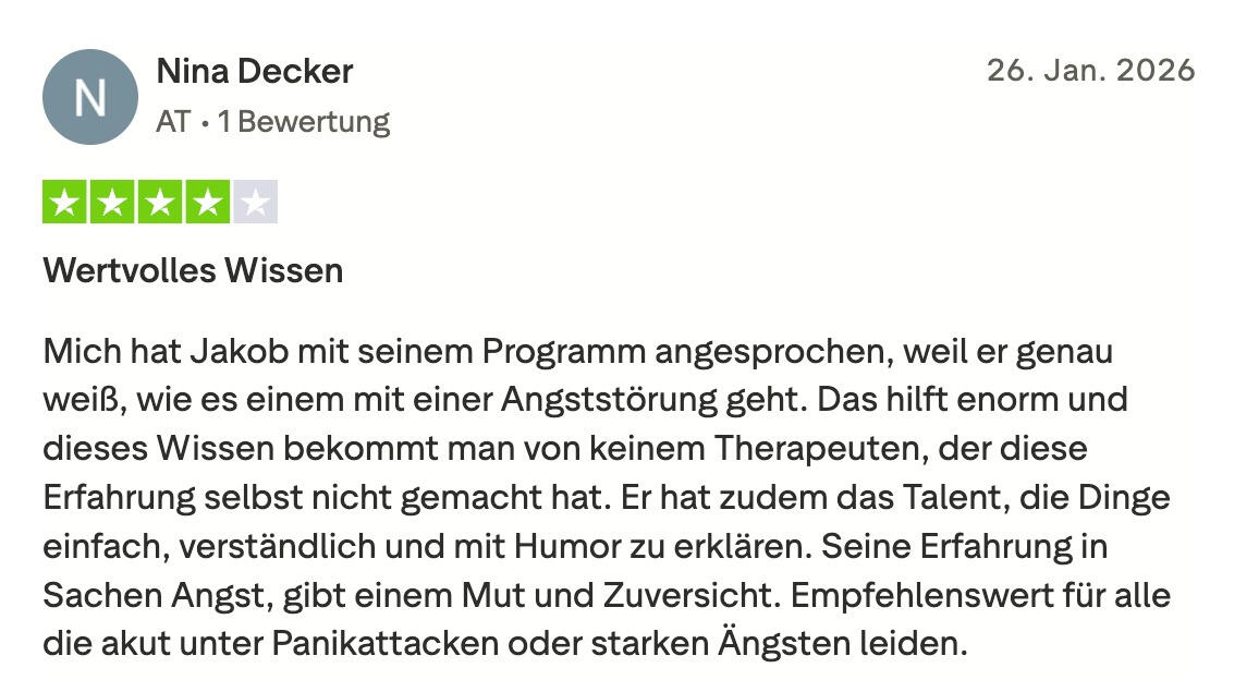 Häufigkeit von Panikattacken: Von 4/10 auf 0/10