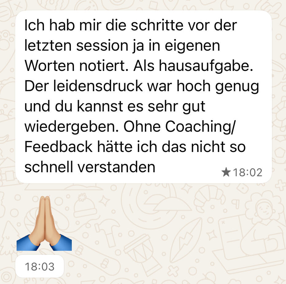 Die VIP-Intensivbegleitung aus der Angst ist ein maßgeschneidertes Programm über mehrere Monate und liegt je nach Umfang zwischen 1.800€ und 2.600€.